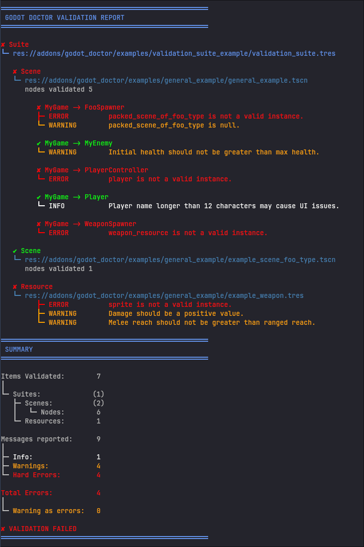 A powerful validation plugin for Godot that catches errors before they reach runtime. Validate scenes, nodes, and resources using a declarative, test-driven approach.