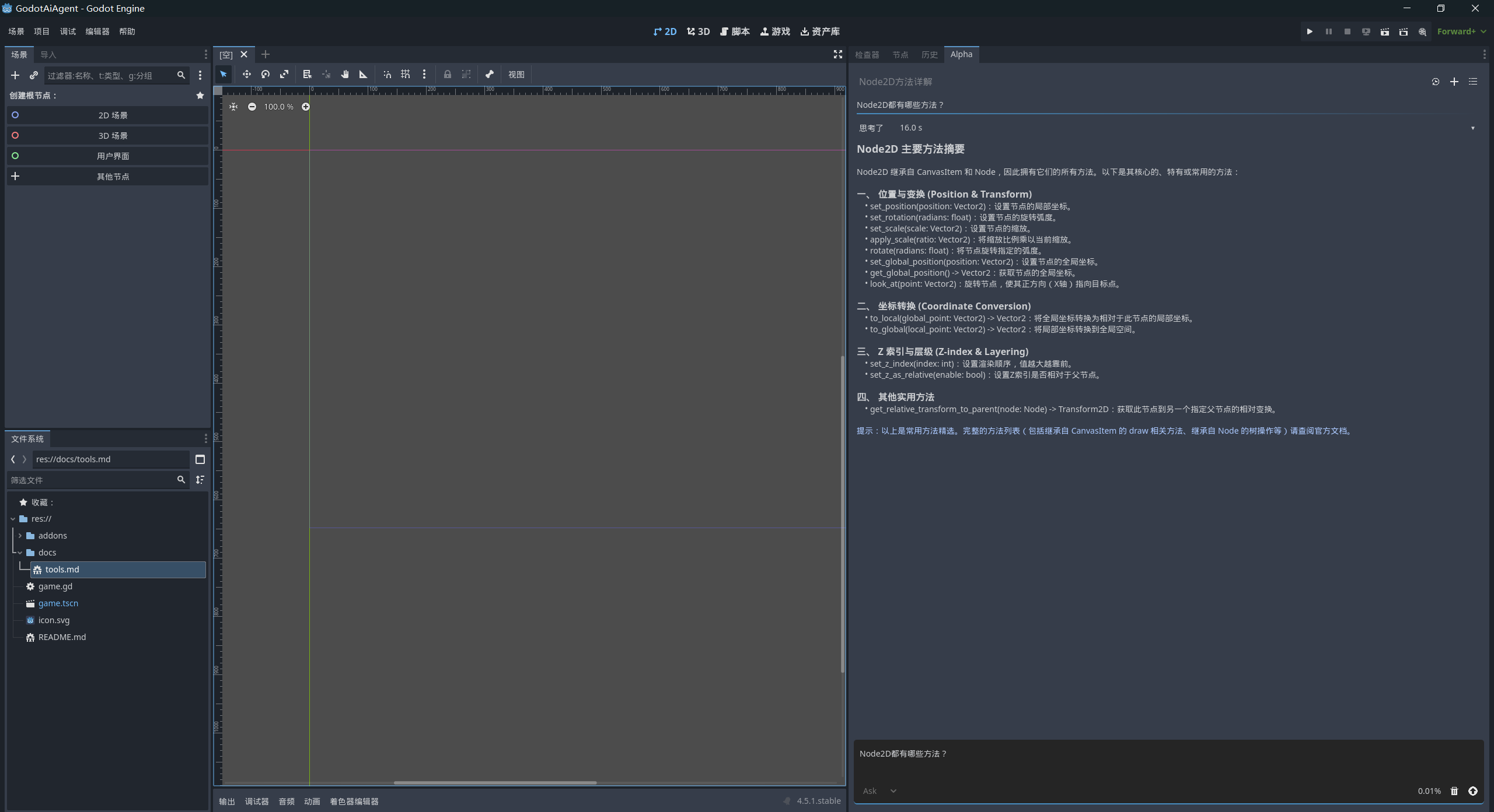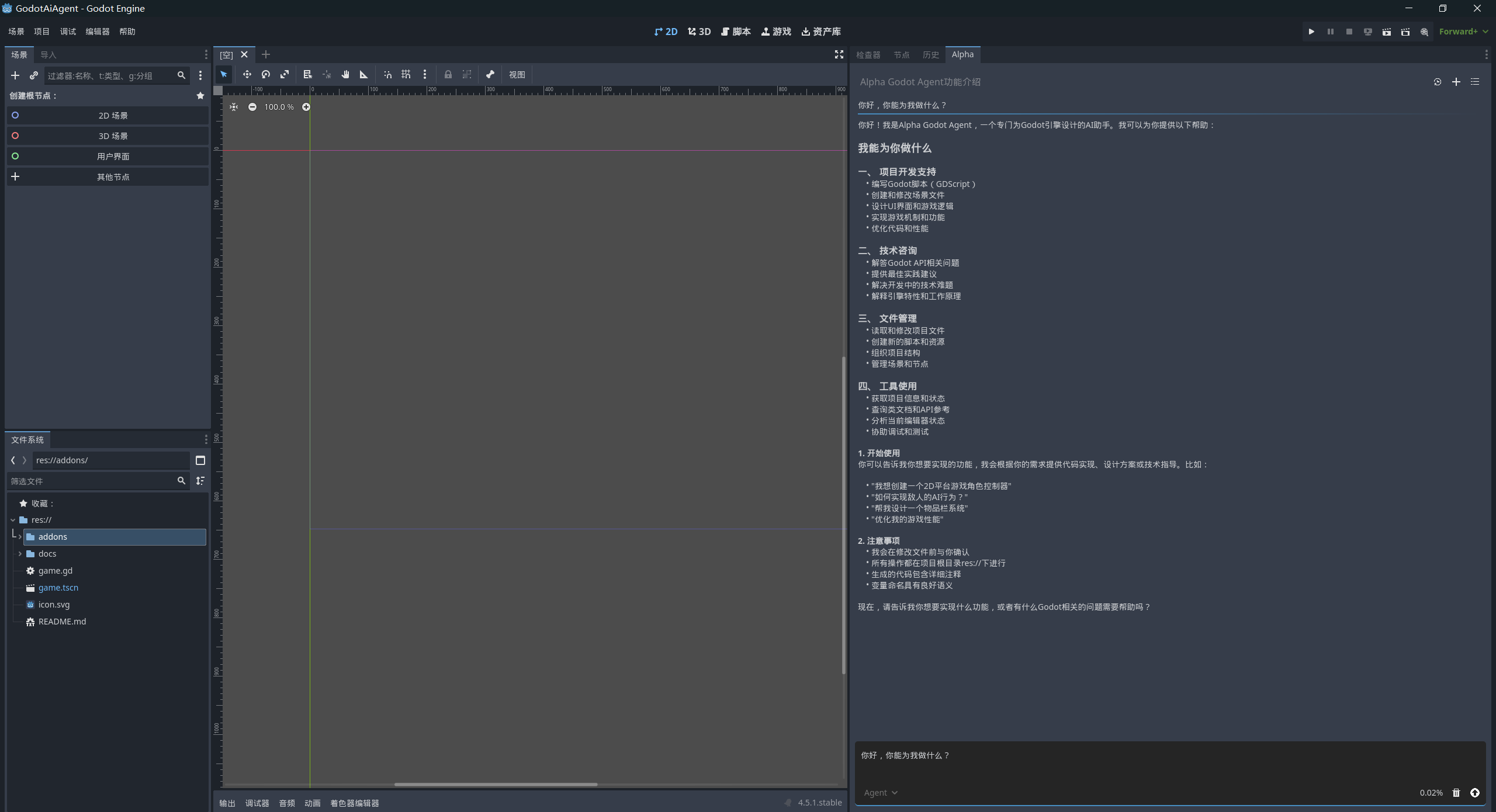 Alpha is an intelligent, embedded AI assistant plugin designed specifically for the Godot game engine. It brings powerful AI capabilities directly into your editor, transforming how you create, debug, and optimize your games.