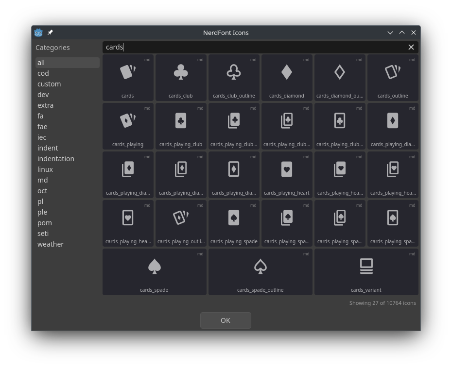 All icons can be found under **Project > Tools > NerdFont Icons**.
