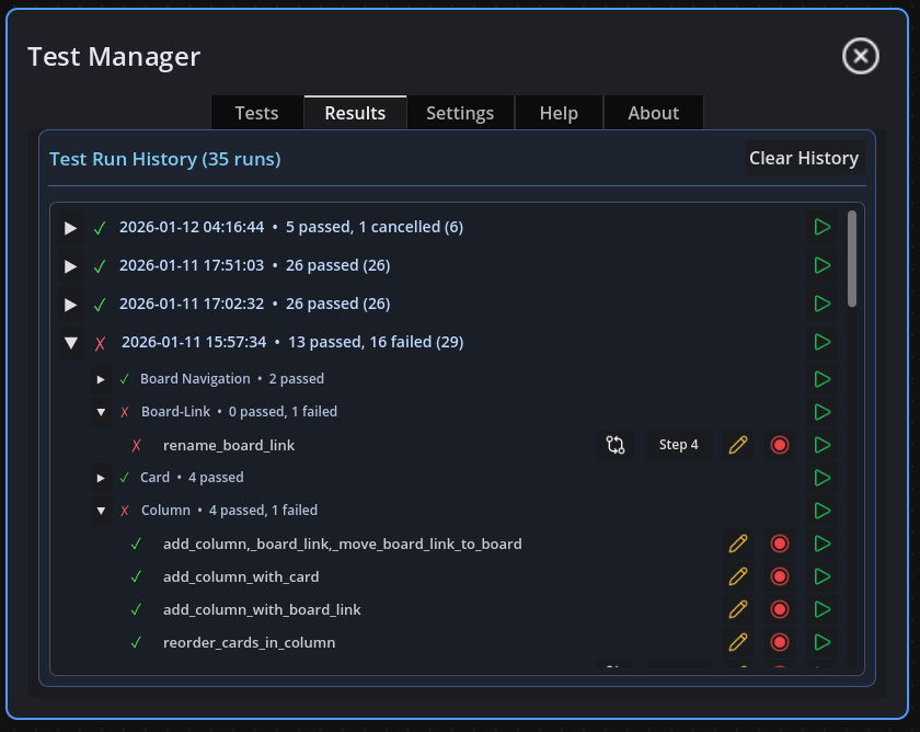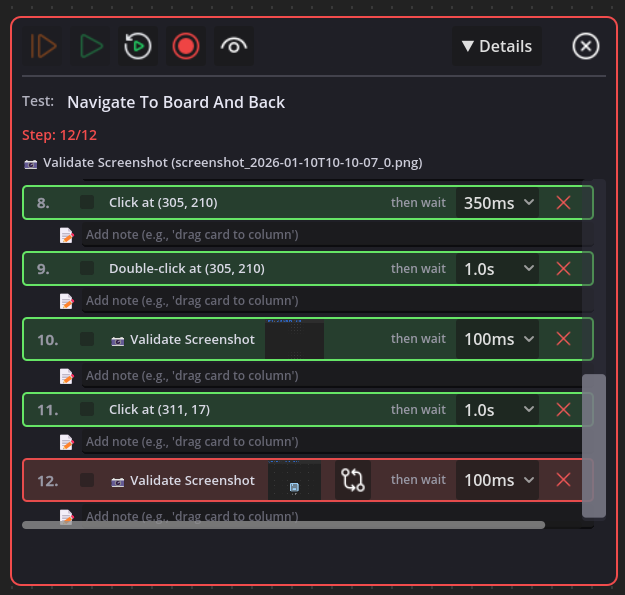 Provides a pretty slick interface for recording, replaying, analyzing and debugging your UI automation. Includes basic mouse/keyboard recording, multi-capture, with configurable tolerance, built-in test manager, categories, step-by-step editing, test debugging and more.