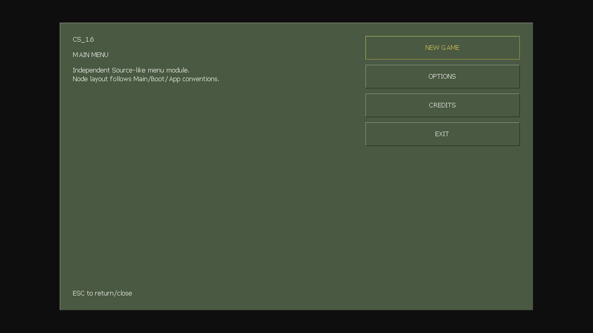 CS16 Source Menu is an independent runtime addon that ships with a complete main menu and fully functional options system, with an instant CS-style look.