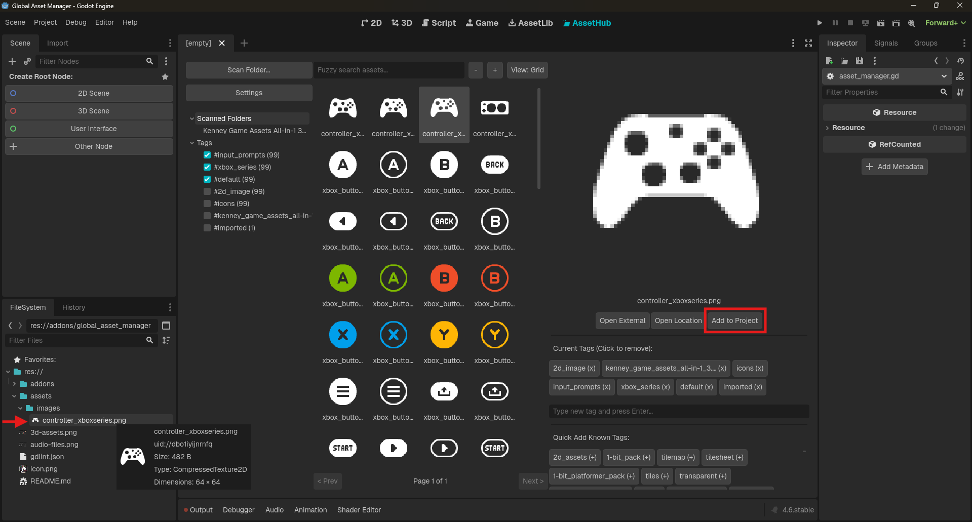 The Global Asset Manager allows you to scan massive local asset libraries, dynamically filter them with tags and fuzzy search, preview them, and instantly copy them into your active project - without ever leaving the Godot Editor.