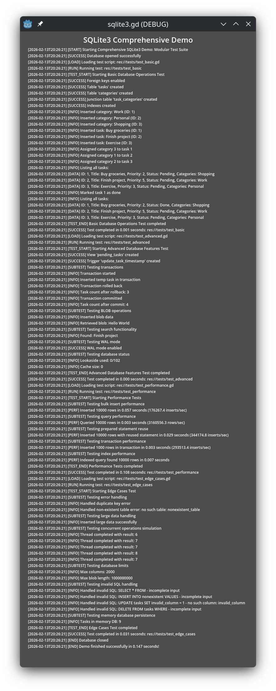 This project provides SQLite3 integration for the Godot Engine using GDExtension.