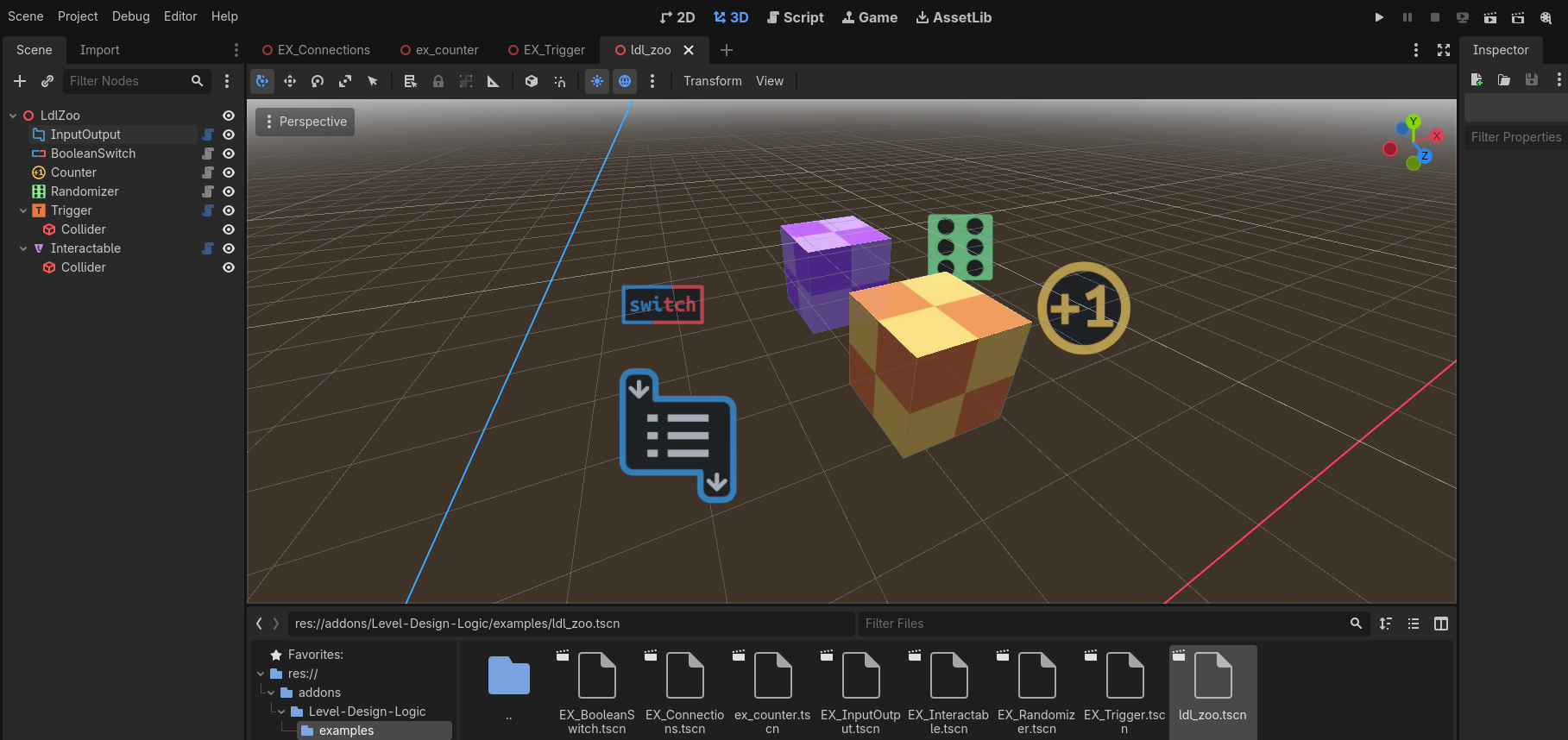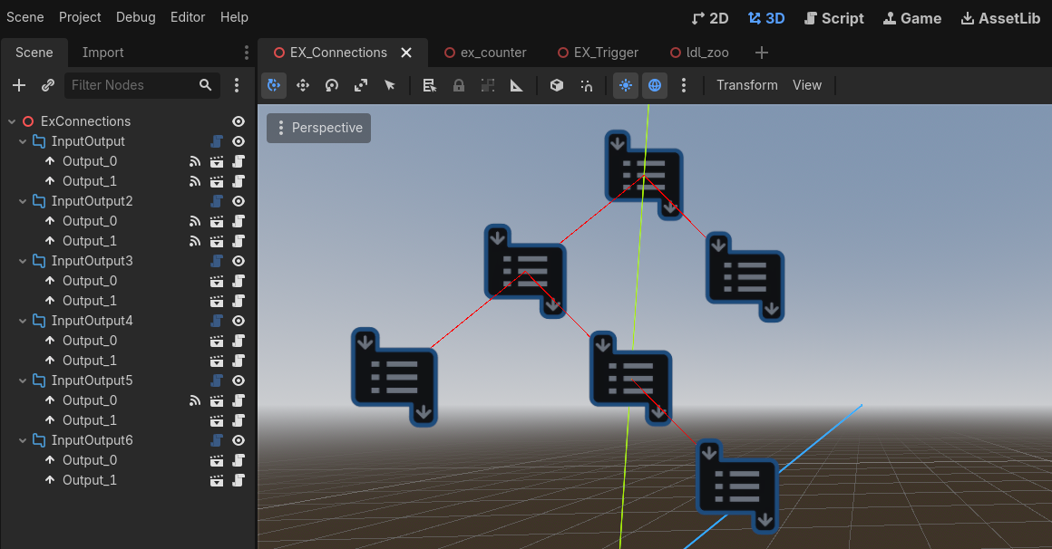 Tools for setting up basic logic during Level Design. Allows for the set up and wiring of logic solely in the 3D Editor and Inspector. Outputs can be run once, multiple times, be delayed, wait for other outputs, check conditions, switch logic, etc.